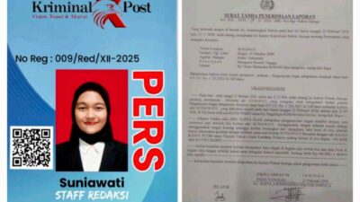 Status Suniawati sebagai insan pers aktif diperkuat dengan kepemilikan Kartu Tanda Anggota (KTA) media Kriminal Xpost Nomor 009/Red/XII-2025, dengan masa tugas berlaku hingga 10 Desember 2026. Sebagai Staf Redaksi, ia merupakan bagian dari pilar penyampai informasi publik yang seharusnya mendapatkan perlindungan hukum dan penghormatan profesi.